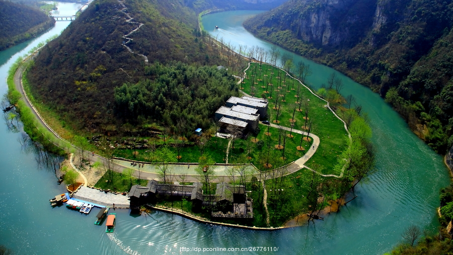 茅坪河是漳河的重要支流,清澈纯净。一弯碧水绕春秋寨,两岸群峰林立,深峡空谷,森林枝叶繁茂,幽深神秘,芳草鲜美、落英缤纷、自然风光优美,呈现出十里山水十里画廊的奇景。这里还有很多水上游乐项目,舫船、竹筏、快艇、乌蓬船等等,人在船上走,如在画中游。乘坐水上游乐项目里看到的索道就是著名的襄阳第一索,它建于望月山上,千米索道,99 个吊篮来回穿梭,靓丽的颜色,流动的吊篮,本身就是一道美丽的风景线。乘索道可直达望月山顶,在山巅一览山河美景,无限风光尽收眼底。从望月山看出去,鲤鱼山如刀削斧劈,两面绝壁三面环水,南北的笔架山与望山,深情对望,和茅坪河一起,组成了绝美的 “两山夹一水” 的八卦图形。